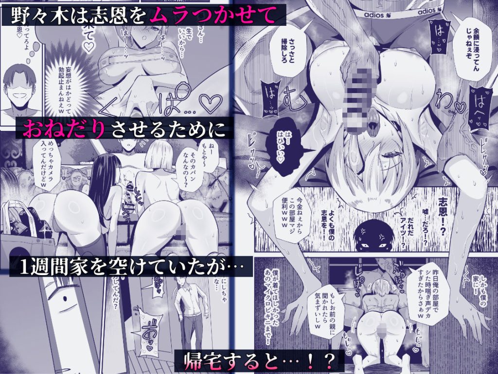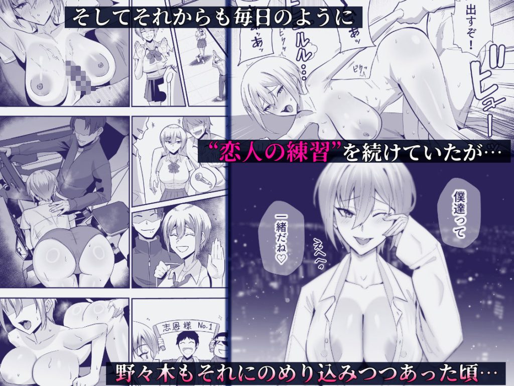 その後も合鍵を渡して‘恋人の練習’と言い仲を深めつつ、毎日志恩を都合よく●していた。ある日野々木は志恩をムラつかせ、おねだりをさせようとわざと1週間ほど家を空けていた。