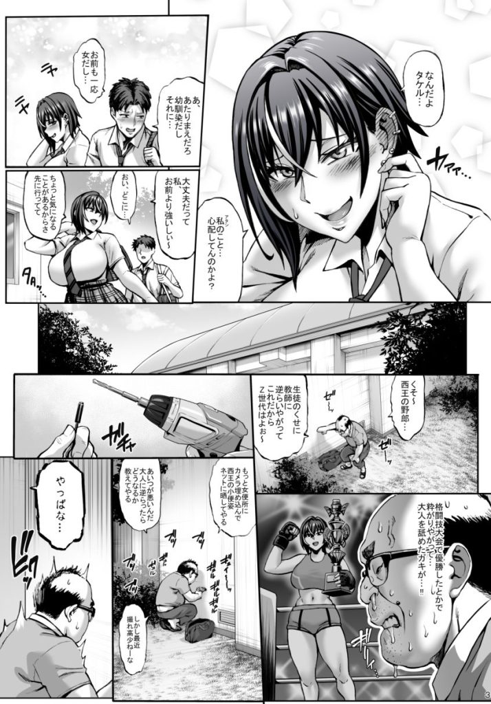 正義感が強い格闘JK、トアコはセクハラしている中年ハゲ教師ハゲ山に制裁パンチを食らわせる