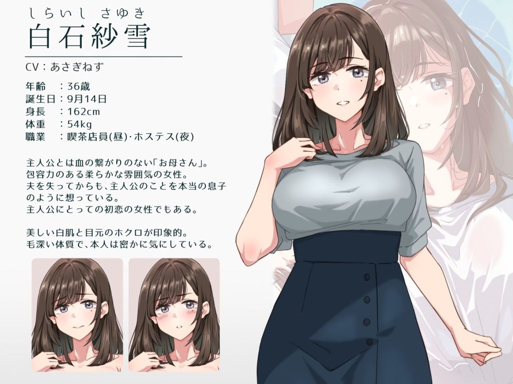 血の繋がらない母『紗雪』と姉『美波』と共に暮らす主人公『僕』。 秘めた想いを胸に、家族としての穏やかな日常を過ごしていた。 しかし――紗雪を狙う男が現れ、その日常は静かに揺らぎ始める。美人母姉との背徳の一夜を追体験できる『青春』×『寝取られ』ADVノベル。